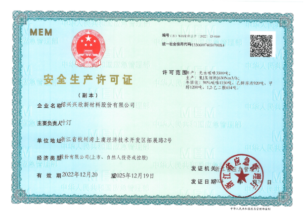 紹興興欣新材料股份有限公司成立于2002年06月27日,占地面積122畝,位于杭州灣上虞經(jīng)濟技術(shù)開發(fā)區(qū)拓展路2號,現(xiàn)有職工200余人,專業(yè)技術(shù)人員50余人;博士、碩士研究生30余人組成的一支知識型、專業(yè)化的技術(shù)科研團隊。公司面向全球市場,專業(yè)開發(fā)電子化學品、環(huán)保化學品、醫(yī)藥中間體、高分子材料等先進新材料重點領(lǐng)域的省級科技型企業(yè);建有浙江上虞、安徽東至兩個生產(chǎn)基地。目前為“國家高新技術(shù)企業(yè)”、浙江省“隱形冠軍”企業(yè)、浙江省專精特新中小企業(yè);建有“省級”研究開發(fā)中心,共建天津大學浙江紹興研究院電子化學品研發(fā)中心。